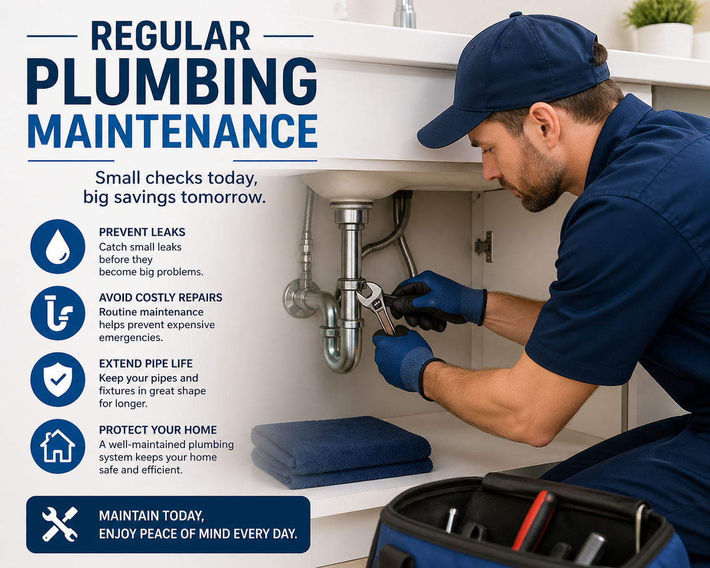 Engaging in preventative plumbing maintenance is economically advantageous. Regular checks and repairs can help extend the lifespan of your plumbing system, avoiding the high costs associated with major repairs or full replacements needed due to neglect.